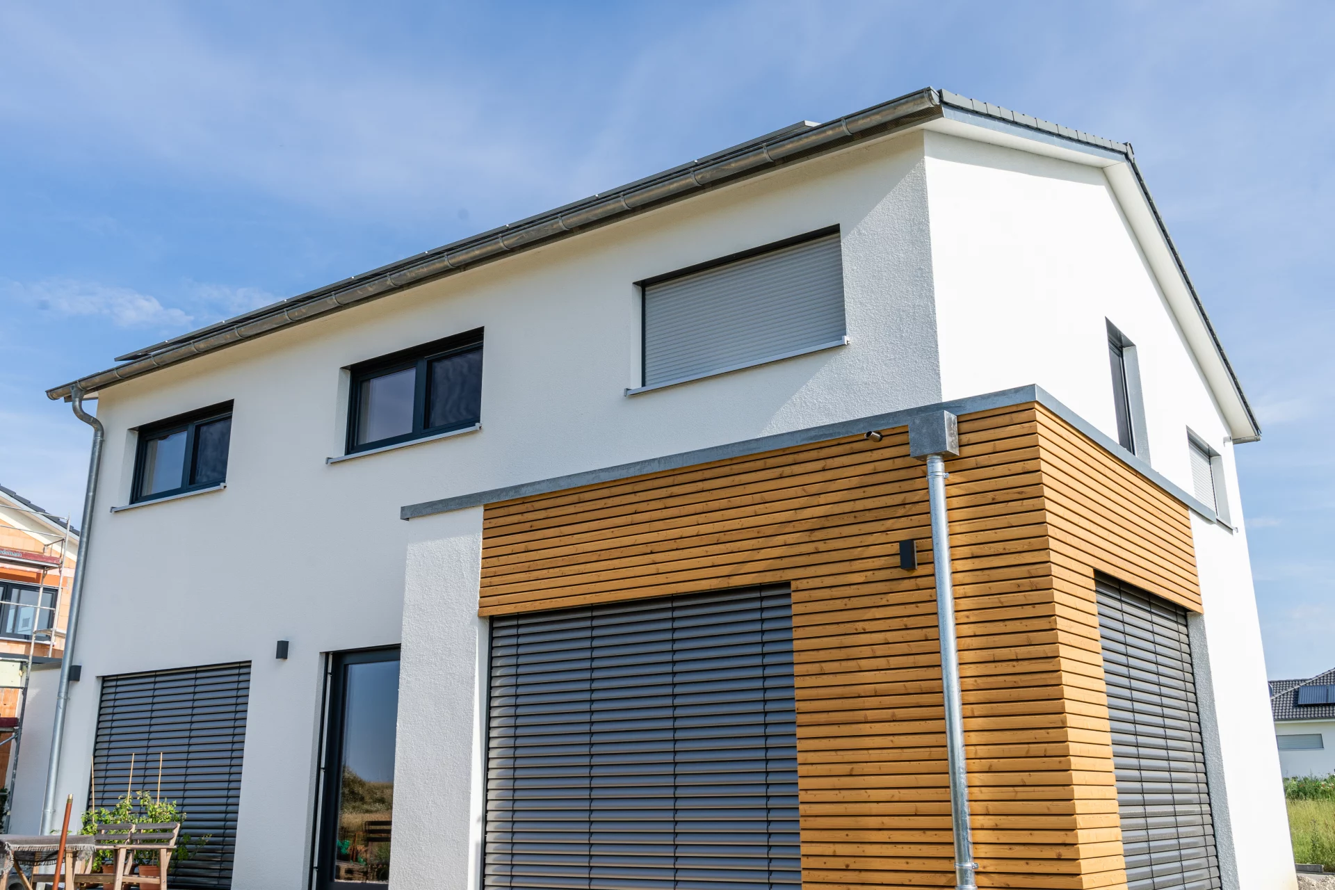 BINZ-HolzMassivHaus in Tannhausen – Harmonisches Zusammenspiel aus Putz- und Holzfassade