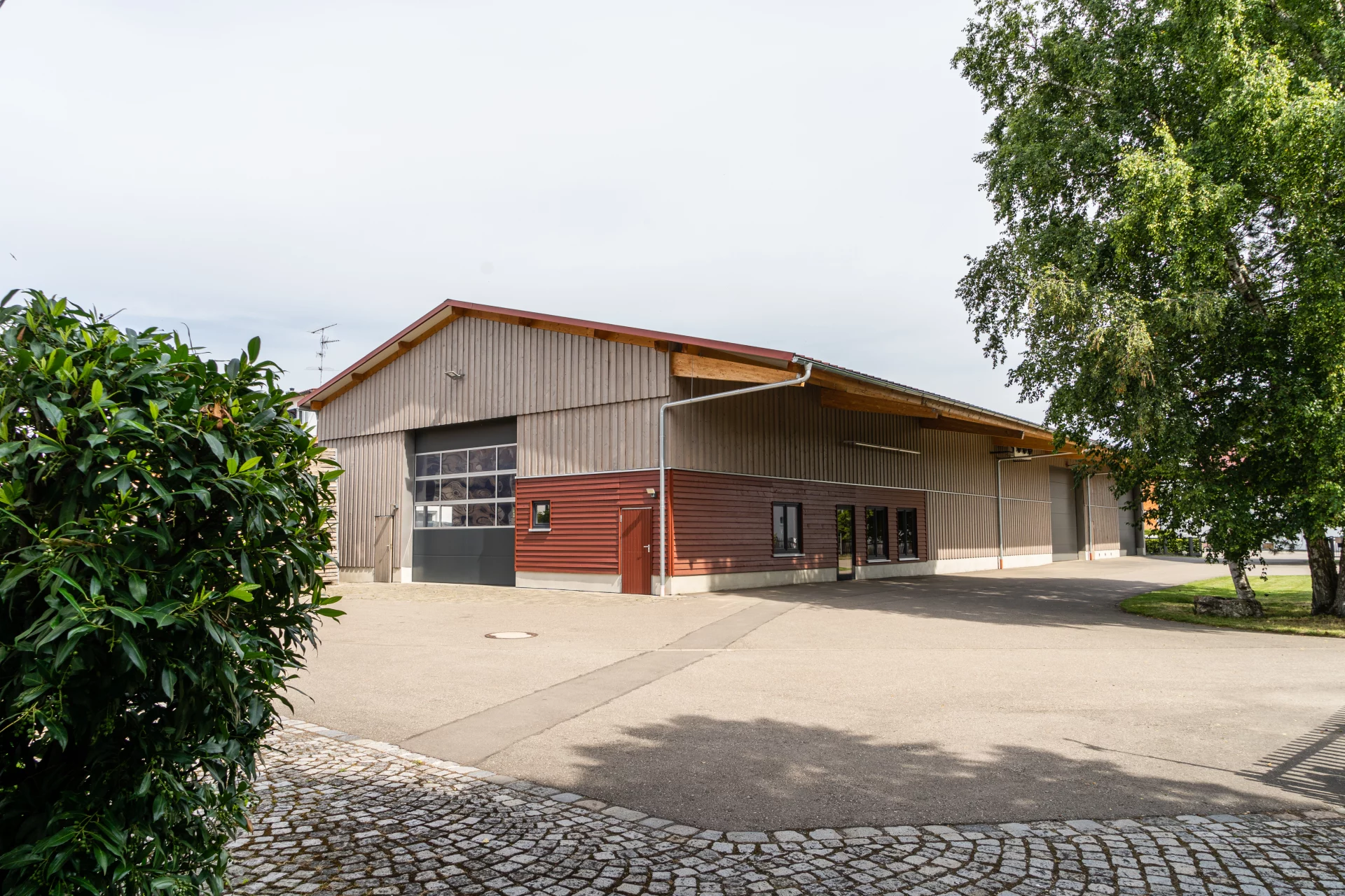 Landwirtschaftliche Mehrzweckhalle in Langenau mit BINZ-Color Holzfassade