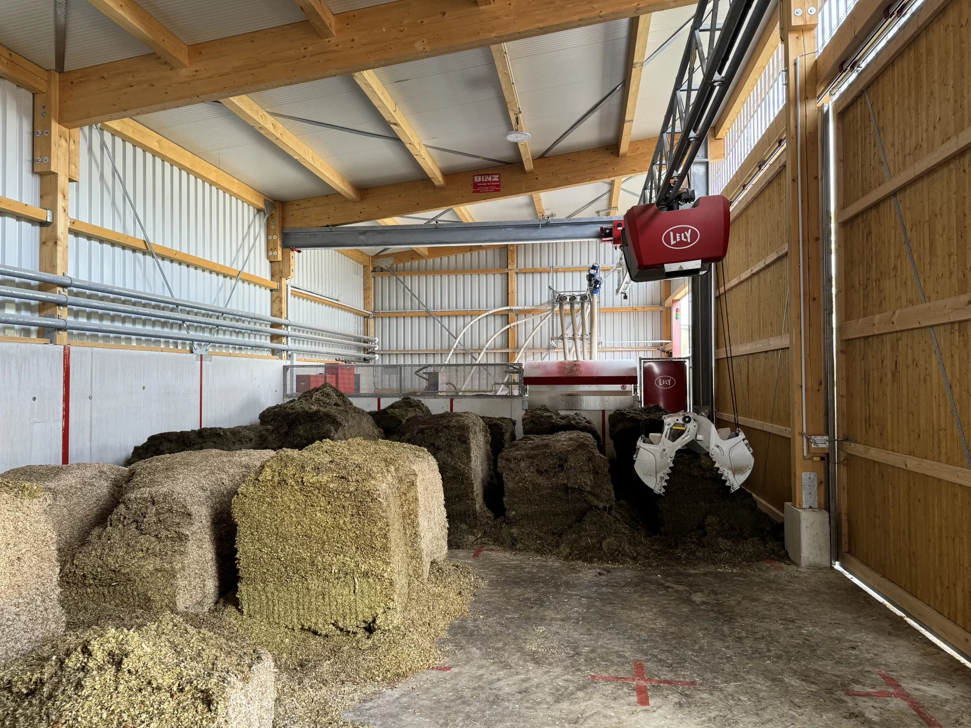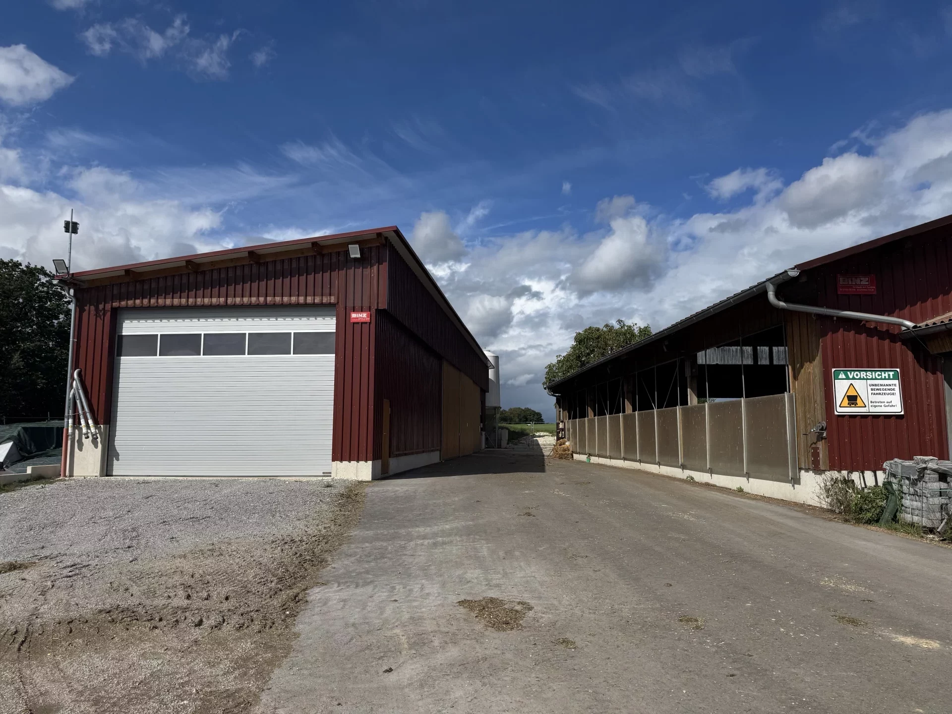 In Neunheim entstand für Familie Götz eine moderne landwirtschaftliche Mehrzweck- und Futterlagerhalle, die höchste Funktionalität und durchdachtes Design vereint. Nach bereits erfolgreich realisierten Projekten – darunter die Stallerweiterung – wurde in enger Zusammenarbeit mit dem Hersteller der automatischen Fütterung eine maßgeschneiderte Hallenlösung entwickelt. Das Pultdach gliedert die Halle in klar definierte Bereiche zur Zwischenlagerung des Futters und unterstützt effiziente Arbeitsabläufe. Die Fassade aus Trapezblech und gelochtem Trapezblech sorgt für Robustheit und optimale Belüftung. Für eine komfortable Nutzung sind Schiebetore am Futterlager, ein Rolltor sowie ein großes giebelseitiges Sektionaltor integriert. So entstand ein langlebiges, ästhetisches und praxisorientiertes Gebäude, das perfekt auf die Anforderungen moderner Landwirtschaft abgestimmt ist.