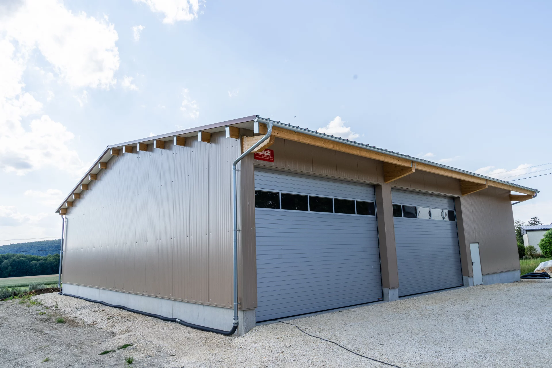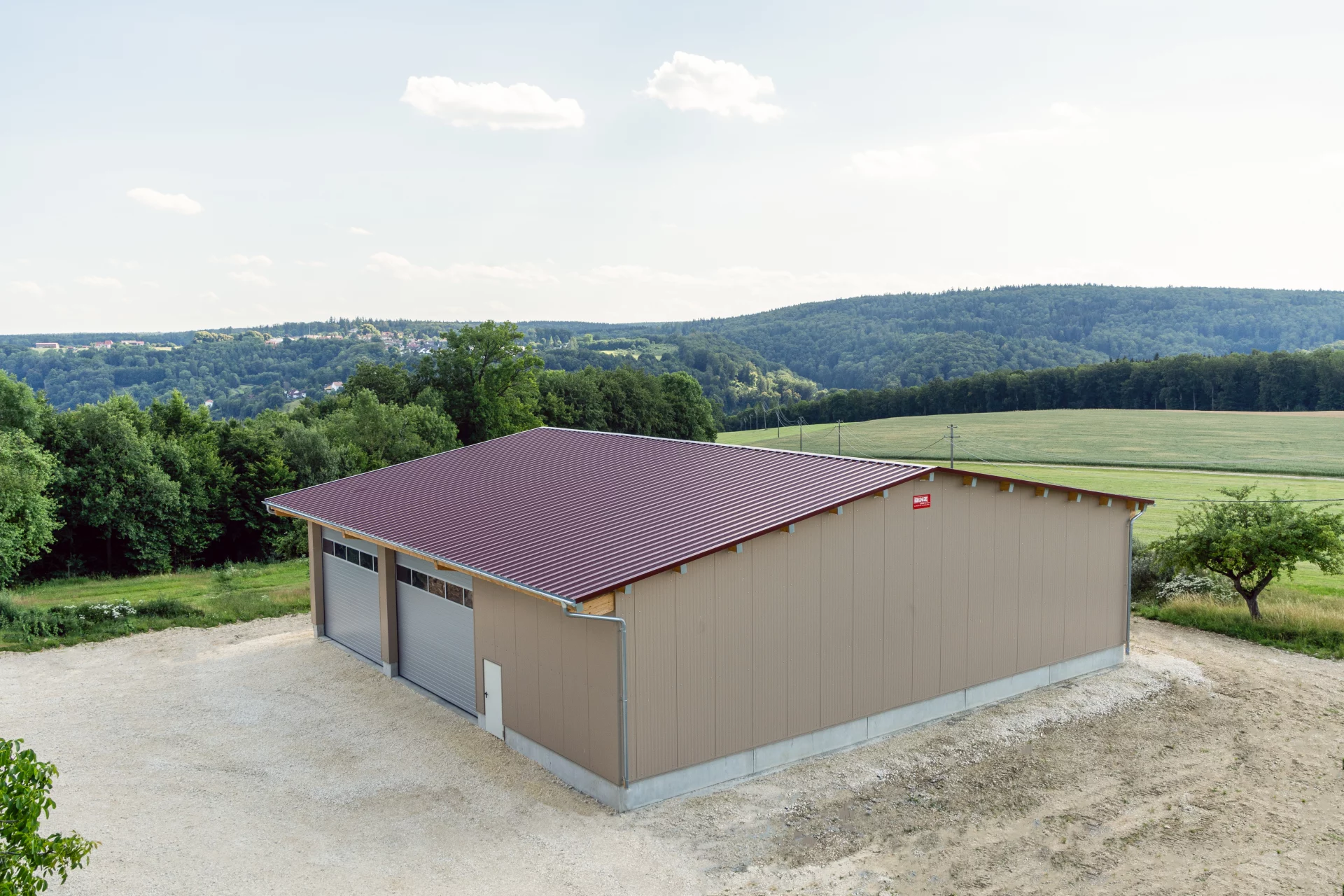 Gedämmte landwirtschaftliche Mehrzweckhalle mit moderner Sandwichbauweise – Hangleiter in Königsbronn