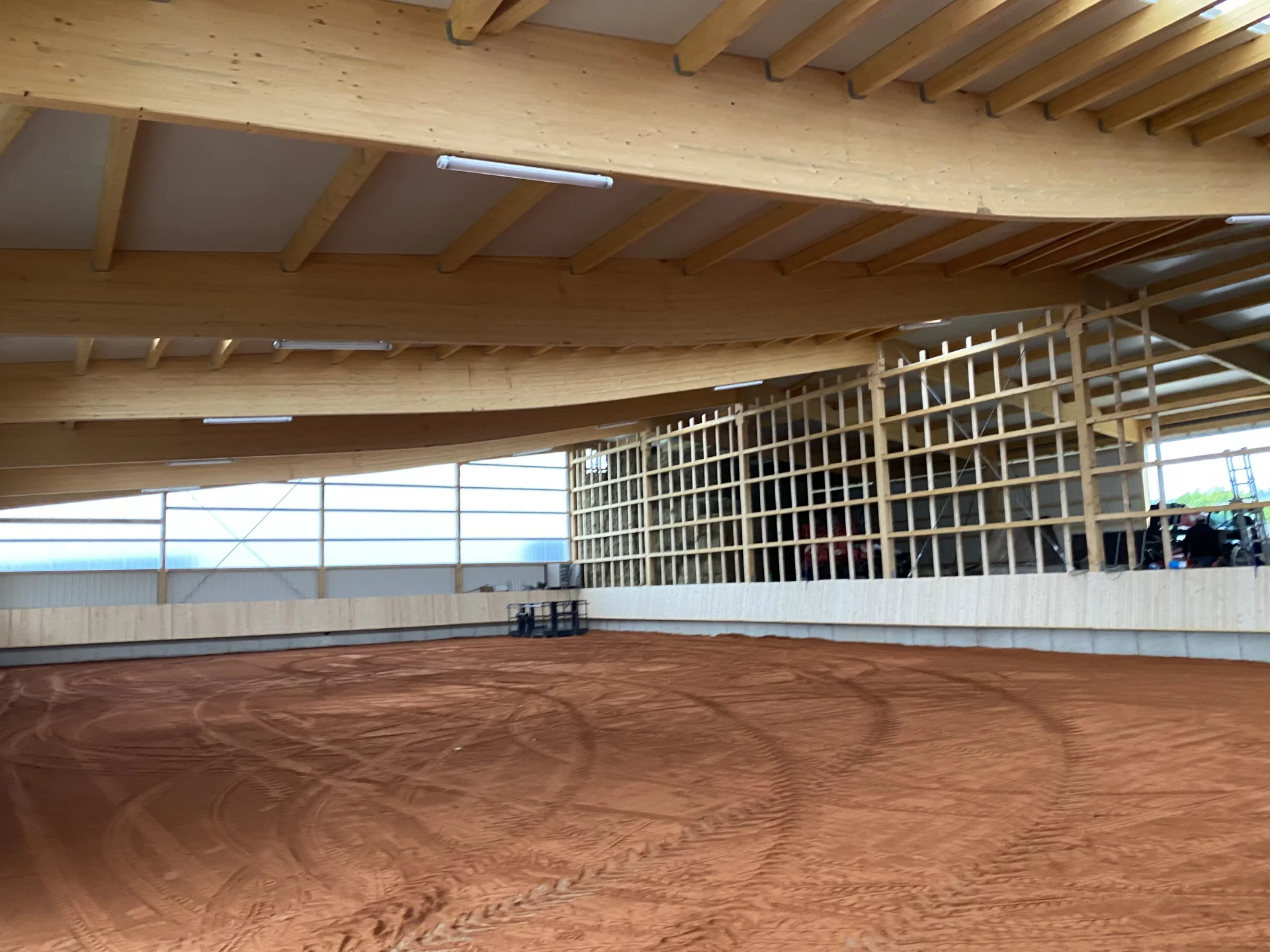 In Türkenfeld entstand eine elegante Reithalle mit markantem Pultdach für den Hof Rieger. Die Dachkonstruktion wurde als hochwertiges Sandwichdach ausgeführt und sorgt so für eine langlebige, energetisch effiziente Lösung. Die Fassade in BINZ-Color verleiht der Halle nicht nur eine moderne Optik, sondern schützt auch dauerhaft vor Witterungseinflüssen. Das klare, funktionale Design fügt sich harmonisch in die Umgebung ein – ideal für eine lichtdurchflutete, angenehme Trainingsatmosphäre für Pferd und Reiter.