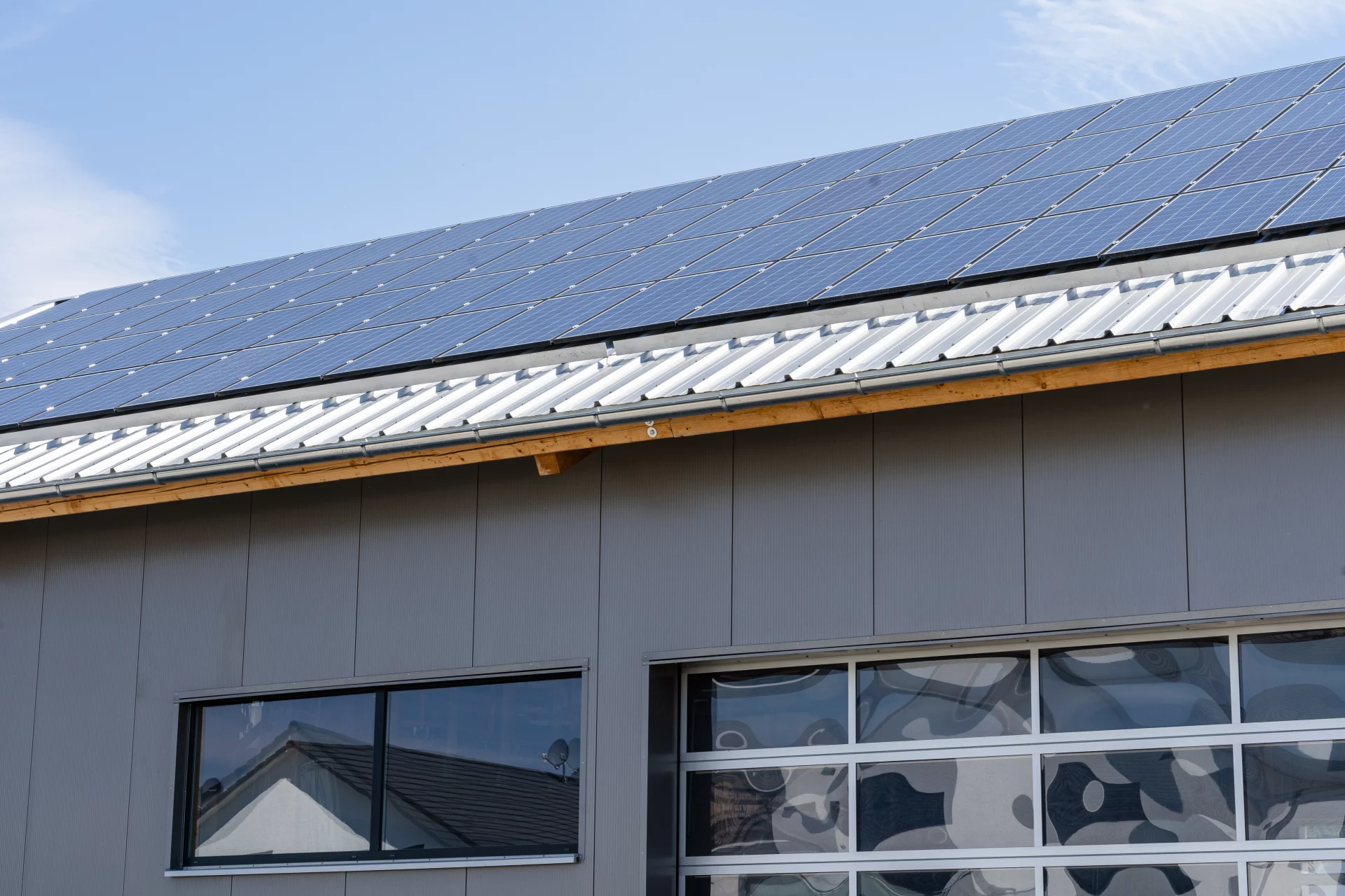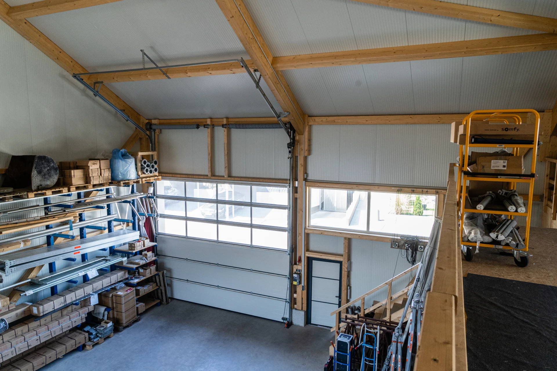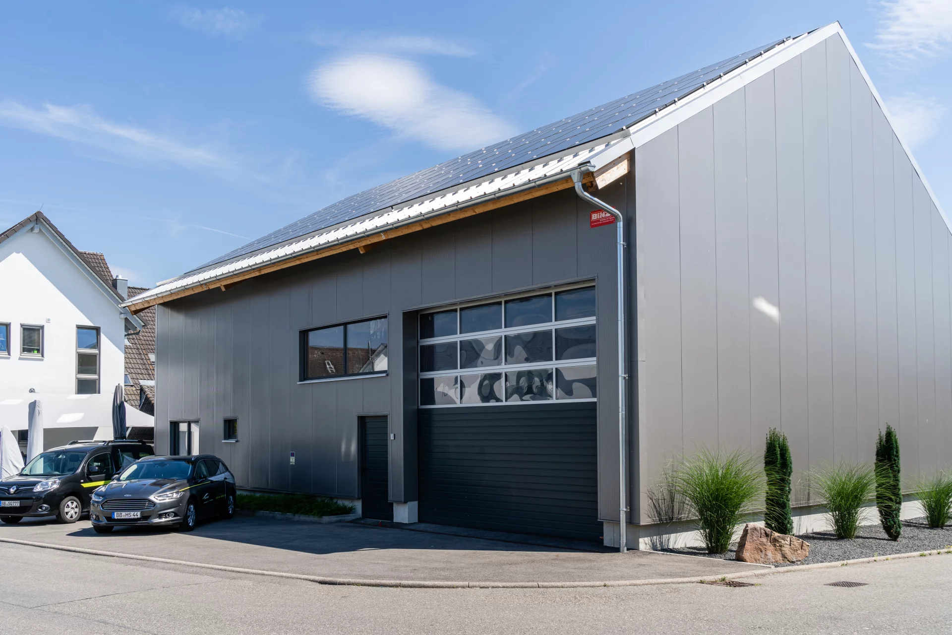 Gewerbehalle für Sonnenschutzbetrieb mit steiler Dachneigung – Seeger in Nürtingen