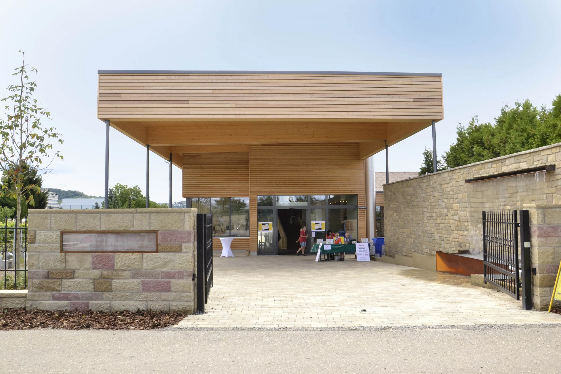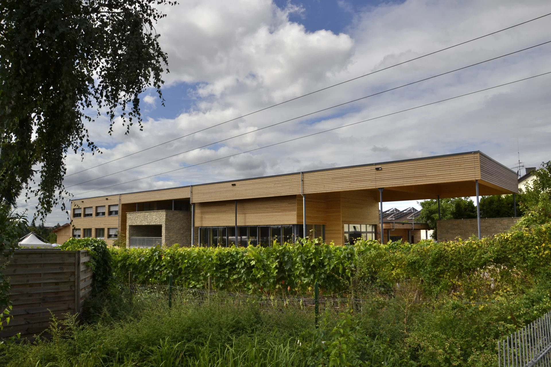 In Fellbach entstand ein architektonisch anspruchsvolles und nachhaltiges Gebäudeensemble, für das Weingut Johannes B, geplant und realisiert von Holzbau-BINZ. Der bis zu dreigeschossige Bau mit rund 40 x 33 m Gebäudeachsen vereint Gastronomie, Weinverkauf, Küche, Fasskeller sowie Personalräume zu einem harmonischen Gesamtkonzept. Der überwiegend in Massiv-Holz-Mauer-Bauweise (MHM) ausgeführte Holzbau zeigt eindrucksvoll die Leistungsfähigkeit des Werkstoffs Holz im modernen Gewerbebau.